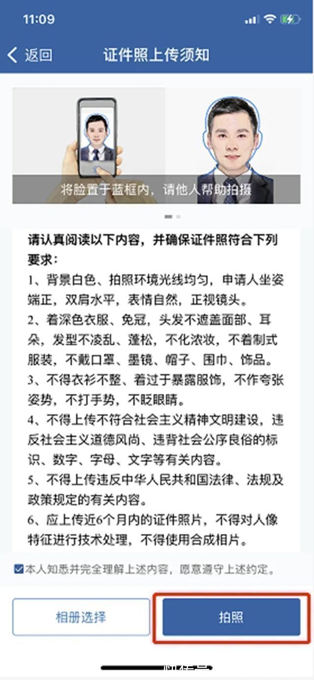 (2) 申请手机拍照。信息系统不符合留相要求的,申请人可以通过拍照提交电子照片申请电子驾照。照片提交后,公安机关交通管理部门将在1个工作日内进行审核。对符合要求的,“交通管理12123”APP将生成电子驾照并推送申请成功信息。需要提醒的是,请仔细阅读照片拍摄说明,选择白色背景,穿深色衣服,并请他人拍照。